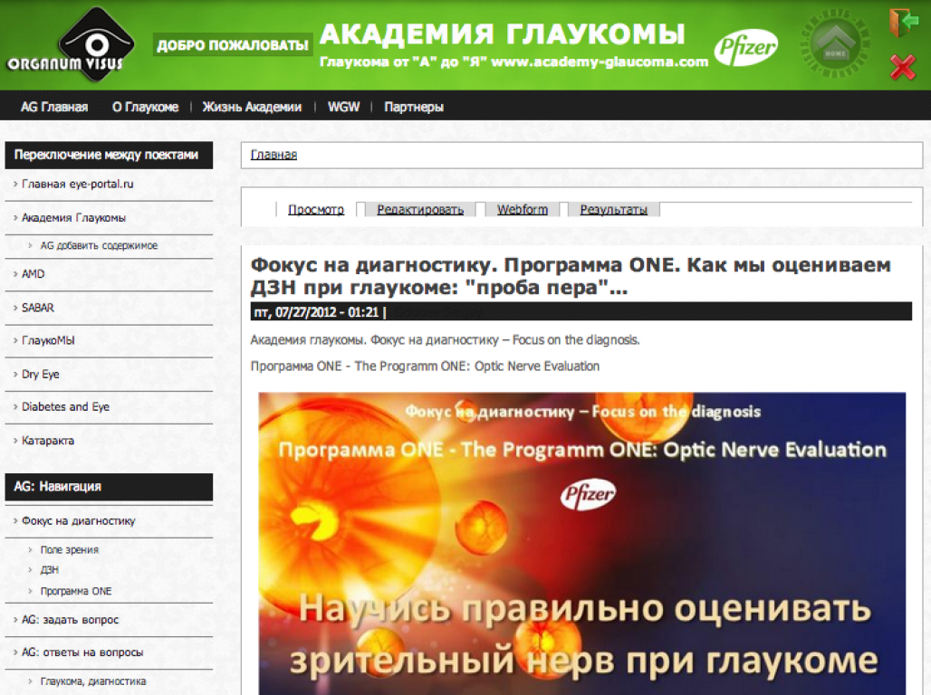Инновационный образовательный проект для офтальмологов. При поддержке компании Пфайзер.