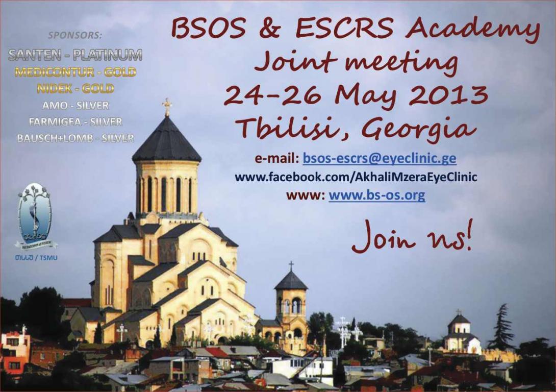 We are pleased to inform you that BSOS* & ESCRS Academy Joint Meeting will be held in May 24-26, 2013 in Tbilisi, Georgia.