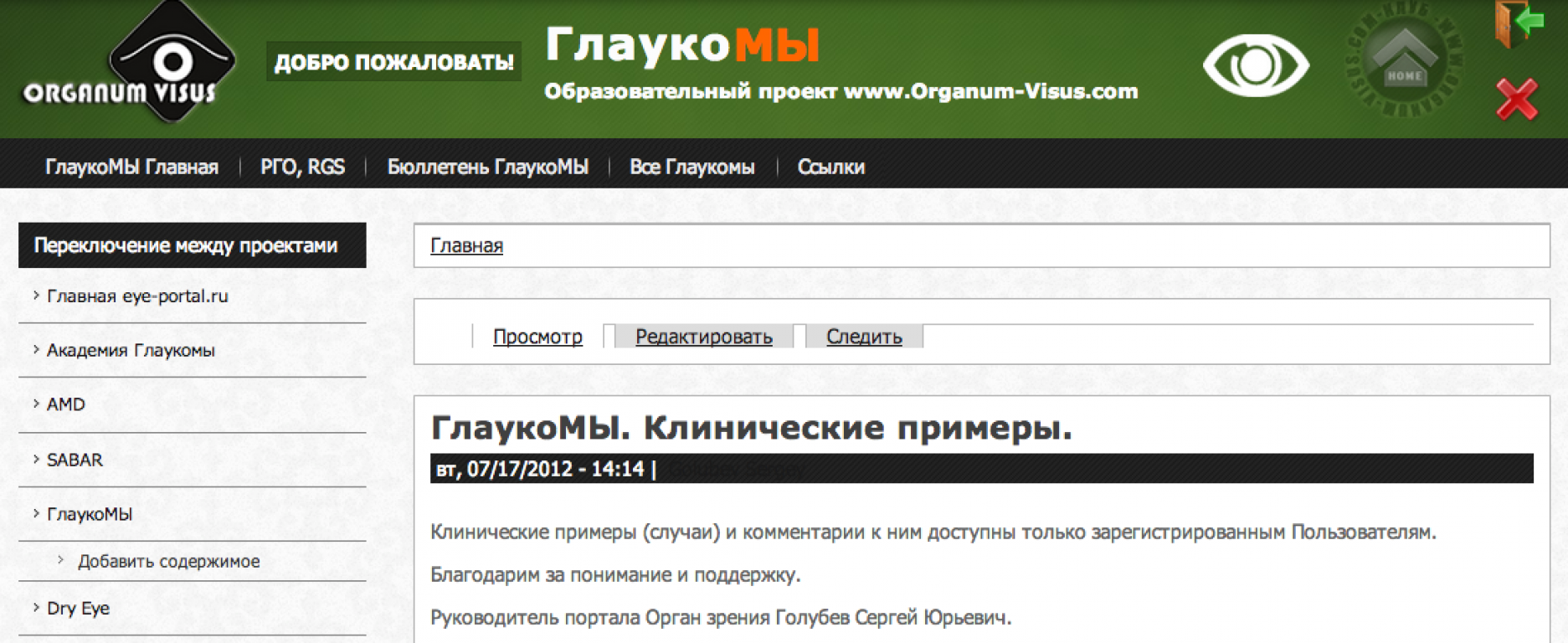 Мы представляем раздел ГлаукоМЫ Клуба Знатоков офтальмологии на портале Орган Зрения www.organum-visus.com