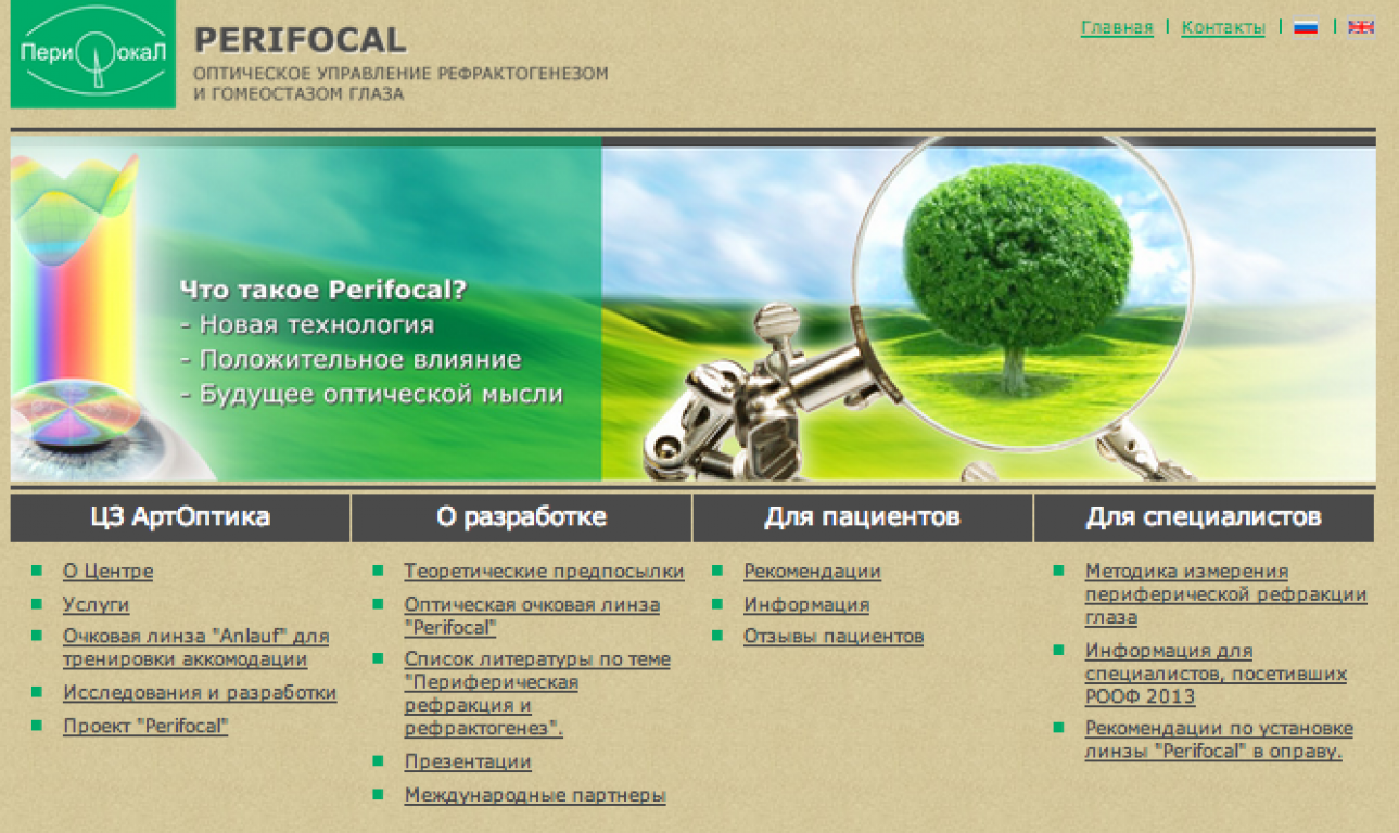 Главный партнер в разработке инновационных линз "Perifocal" - испанская компания Indizen Optical Technologies (IOT, Испания) - одна из ведущих в сфере дизайна оптических поверхностей.